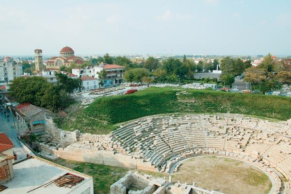 Амфитеатр (один из двух, сохранившихся в Ларисе) восходит ко времени правления македонского царя Антигона II Гоната (III век до н. э.). Римляне перестроили здание, приспособив его для гладиаторских боев