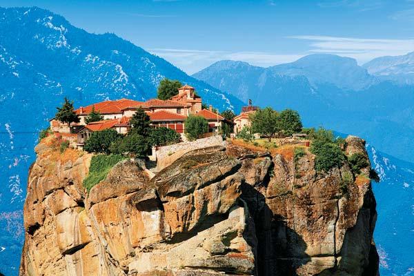 Монастырь Святой Троицы в Метеоре был построен в середине XVI века. Почти пять столетий забраться на 400-метровую скалу можно было только в люльке на канатах, но в XX веке сюда прорубили ступени, по которым воры и вынесли большую часть хранившихся там сокровищ. Фото: EYEDEA/EAST NEWS