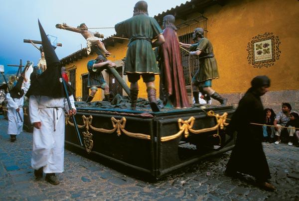 Если вам доведется побывать в гватемальском городе Антигуа и услышать, как кто-нибудь весело насвистывает траурный марш, не удивляйтесь. И не пытайтесь объяснить это макабрическими пристрастиями, свойственными соседям-мексиканцам с их любимым праздником – Днем мертвых. Главные торжества гватемальцев проходят во время Страстной недели. Жители Антигуа готовятся к этому событию целый год: шьют костюмы для процессии, придумывают сюжеты для уникальных «живых» ковров из цветов и в предвкушении праздника дарят друг другу компакт-диски с лучшими записями печальных мелодий. Фото вверху: EYDEA/EAST NEWS