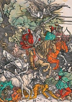 Дюрер издал серию гравюр «Апокалипсис» в 1498 году. «Четыре всадника» – иллюстрация к Откровению евангелиста Иоанна