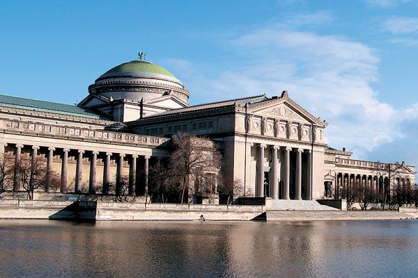 Коллекция Музея начала формироваться в 1920-е годы. Как раз тогда в Чикаго пустовало идеальное помещение для нового собрания – Дворец изящных искусств, оставшийся еще от Всемирной выставки 1893-го. Тогда в нем выставлялись картины Ильи Репина и Константина Коровина, представлявшие русское искусство, и старые мастера из галерей Ватикана. Римский Папа согласился прислать их с условием, что павильон будет каменным и расположится в стороне от остальных. Лев XIII недаром настоял на своем, хоть и вогнал инвесторов в тоску сметой строительных работ. Остальные роскошные белые палаты смотрелись даже ярче, а стоили дешевле, поскольку возводились из дерева. Однако всего через год они погибли, охваченные пламенем, разгоревшимся от одного-единственного уголька. Уцелели только «Изящные искусства». Там и разместился в 1933 году Музей науки и промышленности. Архитектор Чарлз Этвуд задумал дворец в стиле модерн, но с использованием классической скульптуры. Поддерживающие боковые портики кариатиды легко узнаваемы: они скопированы со знаменитого афинского Эрехтейона. В 1893 году скульптуры были гипсовые, как и крыша здания. Поэтому к началу 1920-х они и рассыпались вместе с крышей. Теперь дом одиноко стоял среди парка в романтических руинах. Его уже собрались снести, когда Розенвалд стал подыскивать помещение для своего новорожденного музея. Лучшего места было не найти. Построили добротную крышу, кариатид воссоздали на сей раз из мрамора, не пожалев на них 300 тысяч. От выхлопных газов девушки, правда, посерели и на фоне сияющих пластиком высотных домов смотрятся благородной древностью.