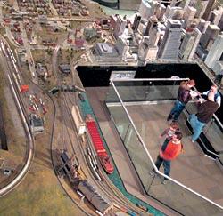 Тот же путь от Чикаго до Сиэтла под крылом лайнера, но уже по земле, воспроизводит игрушечная железная дорога, раскинувшаяся на половину зала. Между этими двумя точками по рельсам одновременно ходят 35 поездов самого разного назначения, каждый по собственному маршруту. Их движение регулируют 10 автоматических стрелок, устроенных как настоящие. Между узнаваемыми чикагскими небоскребами ростом с человека снуют электрички и поезда метро. Станция подземки «Джексон» показана в разрезе. Она находится как раз на уровне глаз детей, которые таращатся на сцены прибытия поезда и посадки, прижавшись к отделяющей публику стеклянной стенке. Пути продуманы так, чтобы за любым поездом можно было проследить. Переключая внимание с одного поезда на другой, идешь вдоль ограды и так «обходишь» полстраны.