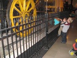 Дети запускают механизмы паровоза «Ракета» Джорджа Стефенсона