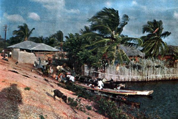 Жители дельты Моно с безразличием, даже с каким-то презрением относятся к суше. Они ставят свои жилища как можно ближе к воде, хижины занимают минимальное количество земли и не имеют в отличие от обычных африканских домов ни внутреннего двора, ни даже намека на огород. Вот и в этой деревушке под пальмами дома стоят у самой кромки суши. Вода лениво плещет в днище причаленных пирог, повсюду развешаны для просушки сети. Взрослых мужчин не видно – рыбаки еще не вернулись с лова.