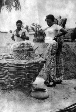 Здесь, в старой части Авло, испокон веков занимаются солеварением. Весь процесс изготовления соли делится на две стадии. Сначала на одном из соседних островов вымывают из солончака землю. Закладывают ее в большие круглые резервуары, похожие на громадные, врытые в землю корзины. Они сделаны из толстых ветвей и выложены изнутри глиной. Когда резервуар заполнен доверху, в него начинают постепенно заливать воду. Образующийся крепкий соляной раствор выливается через сток у основания корзины. Затем соль надо выпарить, это делается внутри небольших приземистых хижин, в центре которых сложены из глины печи, установленных на них тазах булькает белая вязкая жидкость, точь-в-точь как сироп для варенья.