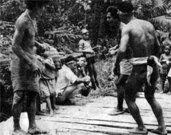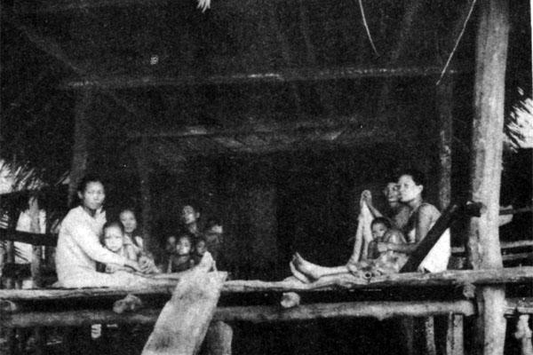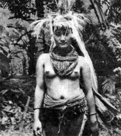 Я расспрашиваю о взаимоотношениях в семье. Узнаю, что молодые люди женятся по любви, но согласие родителей обязательно. Жених не дает выкупа за невесту, но родителям ее преподносит подарки: например, кокосовую пальму, дерево дуриана, разные плоды, одну-две курицы, корзину с наседкой и цыплятами. Никто не откажется, если жених подарит сделанную им деревянную миску или долбленую лодку. После сговора начинается подготовка к свадьбе. Она может продолжаться и несколько недель, и даже два года, пока не будет сделано все, что нужно для жизни молодых, включая изучение неписаных традиций и обычаев племени, которые, кстати, гласят, что юноша должен жениться только тогда, когда чувствует, что может прокормить жену и построить собственный дом.