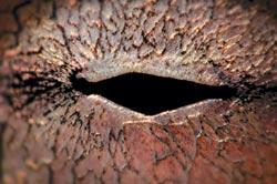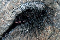 Маленькие, теряющиеся на огромной голове глаза слона залегают в складках кожи и дополнительно прикрыты тяжелыми веками и густыми ресницами. Трудно представить, чтобы их владелец отличался острым зрением. Зрение у слонов и в самом деле не очень развито: они хорошо различают предметы только на расстоянии, не превышающем 10—20 метров. Причины очевидны: взрослому животному не приходится опасаться хищников, а в обращении с едой он больше полагается на обоняние и осязание. Азиатский слон (именно его глаз изображен на снимке), в отличие от своего африканского родича, живет в джунглях и, проходя через густые заросли, часто и вовсе закрывает глаза. Слон, лишившийся зрения из-за травмы или болезни, может успешно жить многие годы. Известны даже случаи, когда слонихи-матриархи, ослепнув, продолжали водить стадо. Единственное, для чего слону по-настоящему нужны глаза, – общение с соплеменниками, большую роль в котором играют жесты.