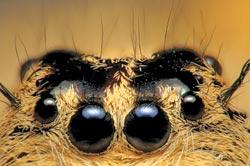 Эти пауки – активные хищники. Они подкрадываются к своей добыче и набрасываются на нее внезапным прыжком с расстояния, которое может в 75—80 раз превышать их собственную длину. Такие способности требуют зрения, позволяющего точно оценивать расстояние до жертвы. Скакунам его обеспечивают шесть или восемь глаз, расположенных почти замкнутым кольцом по краю головогруди. В отличие от большинства членистоногих, глаза пауков не фасеточного, а линзового типа. Два средних глаза (так называемые главные) намного больше остальных. Боковые глаза устроены обычным образом, их главная задача – уловить какое-либо движение. Когда это происходит, паук поворачивается в нужную сторону и его главные глаза, сетчатка которых представляет собой длинную ленту, начинают собственное движение, проецируя разглядываемый предмет на разные участки сетчатки и делая тем самым «развертку» – по ней мозг паука воссоздает точное объемное изображение.