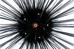 Этот представитель класса иглокожих обитает на коралловых рифах Индийского и Тихого океанов. Не имея ни переднего, ни заднего конца тела, он с равным успехом может двигаться в любую сторону по морскому дну. Морской еж кажется совершенно шарообразным, но если убрать его длинные иглы, то видно, что тело животного немного уплощено снизу и сохраняет признаки звездообразного разделения на пять секторов. В каждом из них есть собственный глазок, расположенный на верхней стороне тела. При таком расположении «глаз» еж не может увидеть ни свою пищу (водоросли и коралловых полипов), ни возможное направление движения. К тому же его «глаза» – простые пятнышки светочувствительных клеток – неспособны к передаче изображения. Зато как только на ежа сверху падает хотя бы малейшая тень, глазки отдают команду мышцам, и длинные острые иглы, усеянные зазубринами и ядовитыми железистыми клетками, немедленно разворачиваются в сторону возможной опасности.