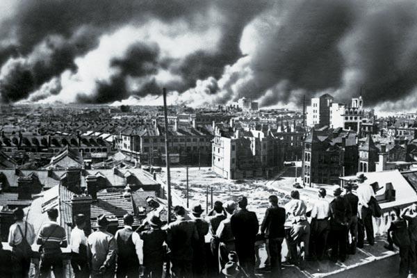 Война начинается всерьез. Эти застигнутые врасплох шанхайцы наблюдают, как горит разбомбленный японской авиацией Чжабэй – один из центральных городских районов. 22 ноября 1937 года. Фото: CORBIS/FOTO SA