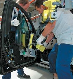 Чтобы поставить такое бронестекло на место, требуются стальные «мышцы» роботаманипулятора: рабочие в руках его не удержат