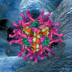 Компьютерная модель полиовируса – возбудителя полиомиелита. Шарообразная капсула заключает в себе геном вируса – молекулу РНК. Ветвистые отростки – это белкирецепторы, узнающие клетку-мишень и связывающие ся с ее мембраной. Фото: SPL/EAST NEWS