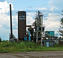 На дороге между Пустошкой и Плоскошью мы увидели вот такой призыв. На фабрике, впрочем, не было ни единого человека