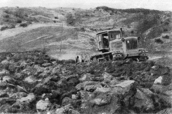 Работа Яши и Гриши более прозаическая. Они не вступают в единоборство с многотонными глыбами. Вместе с помощниками они очищают землю от мелких камней. Медленно, с частыми остановками движутся тракторы, впряженные в «сани». «Сани» – это волокуши, похожие на громадное корыто из листового железа. Рабочие собирают в них камни, которые затем свозят в овраги.