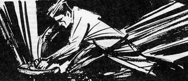 Человек почти захлебывался в липкой, вяжущей нефтяной луже. Нет, ему не сладить с вырвавшимся из-под земли зверем. Нягу почувствовал, что брус начинает выскальзывать из рук. Но тут в его воображении снова возникла та же картина: разрушенная скважина, нефтяной смерч, развеивающий сотни тонн нефти.