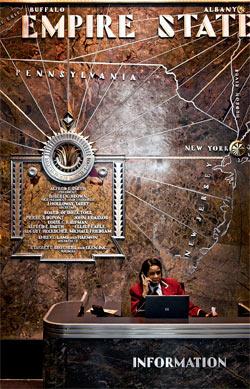 Лобби небоскреба на входе с Пятой авеню украшает символическая карта Америки, в центре которой – Нью-Йорк и Эмпайр-стейт-билдинг