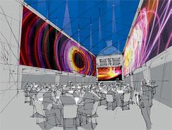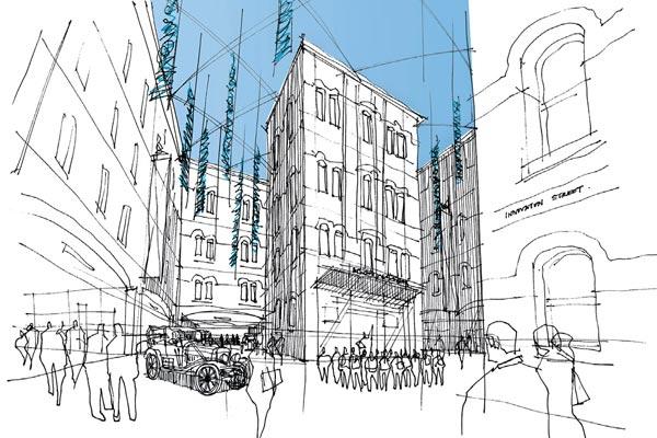 Эскиз внутренних двориков музея, которые по плану компании Event Communications предполагается перекрыть и сделать местом свободного общения посетителей и ученых. Здесь также можно будет разворачивать временные экспозиции