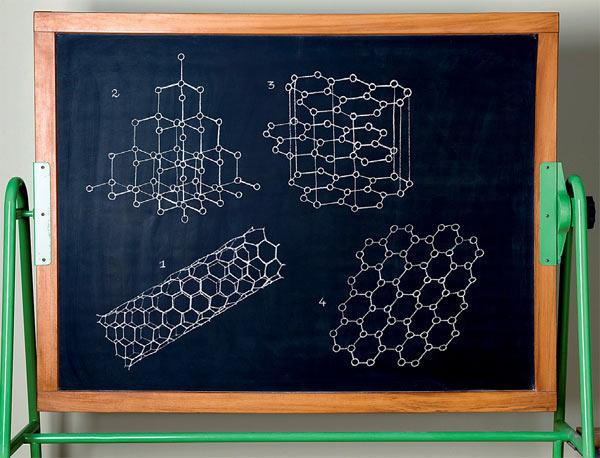 Константин Новоселов (бороду он давно сбрил) и Анд рей Гейм выполнили работу нобелевского уровня, экспериментируя с обыкновенным грифелем. Кто бы мог подумать, что крошечные чешуйки, остающиеся на грифельной доске, станут первым экспериментально изученным двумерным кристаллом. Фото: ЮЛИЯ БЛЮХЕР, FLICKR