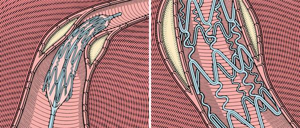 2. Установка стента – завершающий этап ангиопластики – позволяет восстановить кровоснабжение сердца