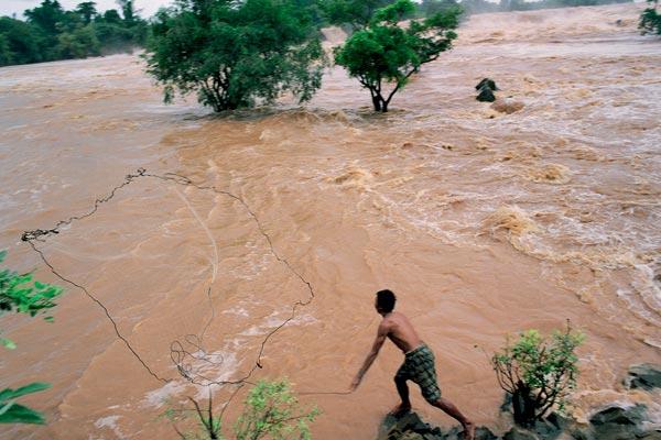 Круглогодичное движение более крупных судов возможно только на пятисоткилометровом участке между Вьентьяном, лаосской столицей, и Кхемарратскими порогами, которые относительно проходимы только в период половодья, в августе – октябре. А дальше путь в соседнюю Камбоджу и далее через Вьетнам в море преграждает самый широкий в мире (до 1700 метров) водопад Кхон. Ниже него в мае – октябре, когда наступает период муссонов, Меконг разливается на 15 километров. Этот участок реки сплошь усеян островами, на которых буйствует тропическая растительность. Он так и называется – Си Пхан Дон, Четыре Тысячи Островов.