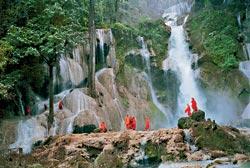 Возле водопадов Тат Куанг Си всегда много буддийских монахов: вода играет особую роль в их религиозных ритуалах