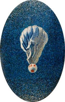 На мозаике изображена знаменитая скульптура Ромуальда Иодко «Девушка с веслом» (1936), растиражированная в тысячах бетонных и гипсовых копий, – символ советской женщины. Скульптура представляет собой любопытный синтез социалистического и античного искусства. В 1920–1930-е годы в СССР главной женской функцией считалось продолжение рода. Отсюда и столь большие бедра и грудь девушки (некоторые культурологи даже трактуют весло как фаллический символ). Все остальное Иодко заимствовал из древнегреческого искусства V–IV веков до н. э.: неопределенность мимики, отсутствие индивидуальных черт на лице, некую «родовую» обобщенность, а также абстрактный взгляд вне времени и пространства, как будто ни на что не обращенный и не отражающий никакого характера или переживания.