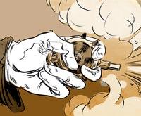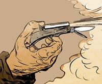 Что здесь происходит? Этим комиксом-пародией, в котором группа джентльменов из общества защищается от нескольких напавших на них представителей городских низов Парижа, мы заменили обычный для этой рубрики набор иллюстраций. Действие происходит в конце позапрошлого века, все герои пользуются гражданским оружием. И говорят по-французски, разумеется. А добро побеждает зло.