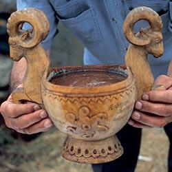 Зачастую горцы используют вместо неудобного стакана рог. «Старший стола» произносит все молитвы кувда