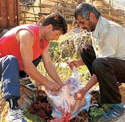 Жертвенного барашка режут горлом на восток, а шкуру снимают голыми руками