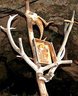 Религиозный синкретизм: православная икона между рогов жертвенных животных
