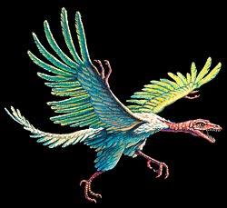 Так мог выглядеть археоптерикс – пернатое существо размером с ворону, потомок первых оперенных динозавров