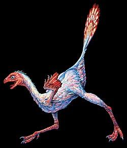 Каудиптерикс – оперенный динозавр, обитавший на территории Китая в меловом периодеПервый же обнаруженный скелет ящера с похожими на пух короткими бороздками по контуру всего тела – синозавроптерикс (Sinosauropteryx prima) вызвал многочисленные споры: не все были согласны, что маленькие бороздки на окаменелой глине остались от пуха. Затем откопали другое существо, у которого уже, без сомнения, на хвосте и передних лапах сохранились отпечатки перьев. За сходство с археоптериксом ему присвоили имя протархеоптерикс (Protarchaeopteryx robusta). На конечностях другого динозавра – каудиптерикса (Caudipteryx zoui) – перья росли еще гуще, а туловище покрывал пух.