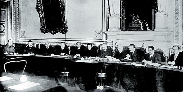 Совет министров Временного правительства: в центре – министр юстиции Керенский, справа от него Председатель Совета князь Львов. Четвертый справа – министр иностранных дел Милюков