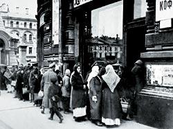 Хлебные очереди, послужившие одной из причин февральских событий, после них не закончились. Сентябрь 1917 года, Петроград