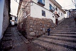 Городской рельеф крайне неровен. В Куско редко найдешь улицу, которую не пришлось бы «оформлять» в виде лестницы, вроде этой, ведущей древним путем из Анан (Нижнего) в Урин (Верхний) Куско
