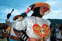 Мы прилетели в Куско в субботний день, когда он отмечал большой христианский праздник. Если церковные процессии на улицах Лимы посвящены Сеньору де лос Милагрос – Христу-Чудотворцу, – то в Куско почитают Сеньора де лос Темблорес, Господа Землетрясений (город находится в сейсмически опасной зоне, и землетрясения не раз серьезно разрушали его). Однако надо видеть эту праздничную «католическую» процессию, которая под пронзительный аккомпанемент окарин – традиционных кечуанских духовых инструментов – несла скульптурные изваяния христианского святого вперемешку с изображениями инкских божеств Пачакамака (Великого Отца), Пачамамы (Великой Матери) и Виракочи, а также – с вырезанными из засушенной тыквы фольклорными масками. Разодета толпа была в традиционные кечуанские красно-белые пончо и шляпы. Рассмотрев это шествие, я зашел в кафедральный собор, где справа от алтаря находится крупная, в два человеческих роста, скульптура Спасителя, и обнаружил, что Сеньор де лос Темблорес – темнокожий (правда, чуть позже выяснилось, что этой окраской он обязан времени и копоти…).