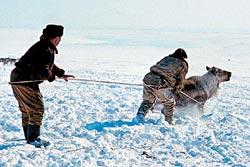 Надо сказать, что и одомашненные животные живут так же, как и их дикие родственники, только под присмотром людей, которые кочуют вместе с ними. Эта отрасль животноводства зародилась в XVIII веке, но особый размах обрела в середине прошлого. «Даешь миллион оленей», «Сделаем оленеводство механизированным!» – такие лозунги предваряли трудовые подвиги прошлых пятилеток. Было даже предложено выращивать вьючных харгинов, для чего изготовили специальные приспособления. Вот только бывалые оленеводы решительно игнорировали эти указания свыше, понимая, какую серьезную опасность для груженых оленей представляет твердый наст. Зимы на Чукотке малоснежны, здесь нет сугробов. Арктический ветер так утрамбовывает снежный покров, что он становится крепче бетона, при этом поверхность его покрыта острейшими застругами. Даже столь приспособленный к условиям Севера зверь жестоко ранит ноги и не может добывать себе корм среди этих ледяных кинжалов, а значит, ему грозит голодная смерть.