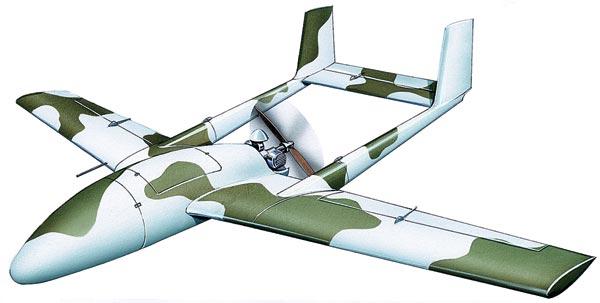 Микро-БЛА комплекса «Элерон», Россия, 2005 г. Взлетная масса – 2,8 кг. Старт – с руки или резиновым жгутом, посадка парашютная