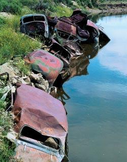 Ржавые остовы старых автомобилей гниют прямо в реке, отравляя воду. Штат Вайоминг, США. Фото: FOTOBANK.COM/GETTY IMAGES