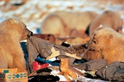 Белые медведи, давно потерявшие природный цвет, роются в помойке рядом с поселком на севере Канады. Фото: FOTOBANK.COM/GETTY IMAGES