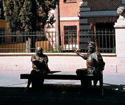 В 2005 году, к 400-летнему юбилею первой части «Дон Кихота», молодой мадридский скульптор Педро Рекехо Новоа навеки «усадил» великую пару встречать гостей у входа в Доммузей, где родился Сервантес