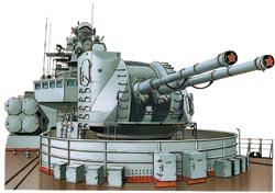 Соревноваться же было с кем. Например, американцы, осознавая огромный потенциал ракетного оружия, работы по корабельной артиллерии тем не менее не прекращали и в 1955 году приняли на вооружение 127-мм одноорудийную автоматическую установку Mk42. Масса башни – 63 тонны, орудия – 2,5 тонны, снаряда – 31,75 килограмма, а всего выстрела – 48,5 килограмма. Орудие наводилось по горизонтали от –180° до 180° (40 °/с), а по вертикали – от –7° до 85° (25 °/с). Практическая скорострельность – 20 выстр./мин, максимальная дальность стрельбы по воздушной цели – 14,4 километра, по надводной и по берегу – 21,9 километра. Для стрельбы были постоянно готовы 40 снарядов, уложенных в два барабана с двусторонней автоматической подачей, начальная скорость снаряда – 808 м/с. А в 1971 году ей на смену заступила усовершенствованная артсистема Mk45 – такого же калибра, но с намного лучшими характеристиками. Масса башни была уменьшена за счет использования армированного алюминия, а подача боеприпасов производилась из магазина барабанного типа на 20 унитарных выстрелов.