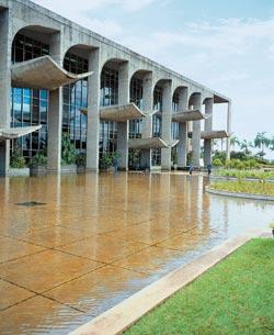 Почти все правительственные здания открыты для посещения: в любой день можно погулять на крыше Дома правительства, а по воскресеньям даже внутри Президентского дворца. Мы заглянули в расположенный неподалеку МИД. Опять на секунду возникло ощущение чего-то знакомого: сочетание стекла и бетона и отполированные интерьеры на мгновение отдаленно напомнили Кремлевский дворец съездов, а гранитные бюсты отцов и дедов бразильской дипломатии – схожие бюсты в московском метро. Но только на мгновение – в этом здании продумана каждая деталь, создана тонкая игра теней и света, и вся конструкция кажется невесомой, прозрачной, ажурной. Пускают туда любого при условии, что он прилично одет. Тут вам и старинная мебель (в частности, стол, на котором принцесса Изабелла подписала «Золотой закон» об отмене рабства), и тропический сад, и анфилада залов под названием «Три столицы», каждый из которых украшен в соответствующем стиле.