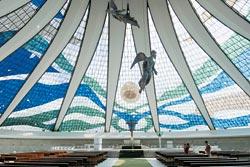 Традиционно храмовые витражи создают особенное, приглушенное освещение. В главном соборе Бразилиа все иначе: он наполняет интерьер ослепительным светом. Этот эффект усиливается тем, что вход в храм представлет собой подобие темного туннеля