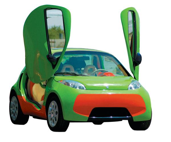 Этот «кузнечик» фирмы Obvio! Automoti-veículos был в прошлом году показан на Нью-Йоркском автосалоне, и это неслучайно: следовало познакомить американцев с экологически чистым (может работать не только на бензине, но и на биоэтаноле или сжатом газе) пластмассовым автомобильчиком длиной всего 2,75 метра, который вскоре появился в автомагазинах США и Канады. Творение дизайнера Анисиу Кампуса стоило, правда, недешево – 14 000 долларов, но оно того стоило! Представьте себе: при массе машины 600 килограммов даже самый «хилый» из трех моторов мощностью 115 л. с. (а в более «крутом» Obvio! 828 стоит двигатель 170 л. с.) легко обставит многих соперников. Технологически машина также оригинальна: пластиковые панели кузова «натянуты» не на обычный стальной каркас – пространственная рама здесь карбоновая. А сам кузов (его вполне можно назвать монококом) не имеет ни одного шва!