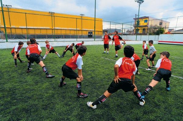 Когда-то главной и чуть ли не единственной тренировочной площадкой для здешних талантов были пляжи – вроде Копакабаны в Рио. Гоняя мяч босиком по песку, мальчишки с малолетства обретали особую технику движений, отличную от той, которая вырабатывается на твердом покрытии. Отсюда, с улицы, они порой и попадали прямо в профессиональные клубы, иногда уже в возрасте 25 лет. Теперь при возросшем спросе на бразильский футбол одним пляжем дело ограничиваться не могло. Нужно было создать такую систему, которая сохранила бы естественные «бразильские» преимущества и в то же время готовила игроков к серьезной карьере за рубежом. Тогда и стали появляться специальные учебные заведения, ориентированные на массовое, так сказать, «промышленное» производство универсального футбольного товара для дальнейшей продажи за океан. Одной из первых возникла школа при известном клубе «Сан-Паулу».
