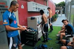 Вообще «учащаяся масса» разбита на три возрастные группы. Первая – от 6 до 10 лет – разбросана по самым обыкновенным футбольным школам, которые клуб только курирует, но находятся они в разных районах города, в его окрестностях и даже в других населенных пунктах штата. Деятельность 20 таких школ «Сан-Паулу» оплачивает полностью, они включены в его организационную структуру. Все остальные находятся под патронатом клуба, то есть получают помощь – амуницией, инвентарем, медицинской аппаратурой, лекарствами… В их распоряжении также врачи, тренеры, отборщики. Кто бы ни финансировал школу, для ребенка обучение всегда и на всех уровнях бесплатно. Как попасть в эти заведения? Очень просто. Достаточно регулярно гонять мяч на любой из спортплощадок Сан-Паулу. Не сегодня, так завтра талантливый парень наверняка попадется на глаза отборщикам (нередко ими работают известные в прошлом игроки). Их задача в том и состоит – бродить по огромному городу в поисках перспективной молодежи. Несколько раз в году отобранных таким образом мальчиков приглашают на двухнедельные сборы. Живут они в каком-нибудь принадлежащем «Сан-Паулу» отеле (чаще всего на главной базе в Барра, где есть гостиница на 95 человек), их кормят за счет клуба, дают форму, проводят медицинское обследование, тестируют по всем параметрам футбольного искусства. Главное тут, конечно, характер и владение мячом, для бразильского игрока эти показатели и сегодня считаются важнее всех прочих – даже физической подготовки. «Главное – чтобы был талант!» – так определяет их Марку Аурелиу. Вот за 14 дней специалисты и успевают отобрать таких «талантливых». Потом их распределяют по тем 20 начальным школам, которые входят в структуру клуба, и учат на этом этапе только футболу (поэтому параллельно мальчикам приходится ходить и в обычные общеобразовательные заведения). Потом, когда воспитанник достигает десятилетнего возраста, его могут пригласить уже собственно в Клубную футбольную школу – так сказать, на второй уровень. Она всего одна, и в ней все виды образования уже совмещены, так же как, к примеру, в московских профильных ЦМШ или МЦХШ. Естественно, все расходы вновь берет на себя клуб. Кстати, и на этом этапе (10—16 лет) в школу еще приходят ребята «со стороны» – из-под эгиды других команд или даже с улицы. «Сан-Паулу» периодически дает объявления о просмотре юношей самого разного возраста. Они могут быть из любой точки страны. Как правило, родители поступивших иногородних мальчиков стараются отыскать в Сан-Паулу родственников, а то и сами перебираются в город, поближе к школе. После 14 лет в исключительных случаях клуб может предложить ученику жить на базе. Тренировки в этом возрасте проходят трижды в неделю (с утра до вечера), а остальное время уходит на обычную учебу, правда, разминка по утрам остается. Ну а с 16 лет начинается третий, почти профессиональный этап, где большая часть дня отдана тренировкам. Теперь почти все воспитанники живут на клубной территории. В конце каждой недели устраиваются матчи в рамках целых турниров: чемпионатов штата среди юниоров, например. Марку Аурелиу рассказал, что некоторые ребята даже не доучиваются до 17 лет, поскольку клуб «Сан-Паулу» (а то и какой-нибудь другой) уже заключил с ними официальные контракты. Конечно же, до этого дорастают далеко не все, когда-то пос