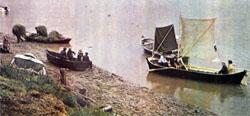 Большой парус он так и не сшил, а маленький, носовой, вышел какой-то сморщенный, похожий на половую тряпку. Но, куда денешься, решили спускать карбас с одним парусом. Карбас поставили на сани, трактор дотащил их до реки и задним ходом подал в воду, карбас заколыхался на волне. Разлили бутылку шампанского, мастера выпили по кружке, весла спустили на воду... И ветра не стало. Облака покойно отражались в гладкой как зеркало воде реки. И пришлось выпить по второй, чтобы хоть немного подуло.