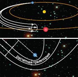 Со времен Кеплера и Ньютона астрономам известно, что в поле тяготения массивного центрального тела движение происходит по классическим траекториям – эллипсам, параболам и гиперболам. Однако современные космические трассы часто сильно отличаются от классических. И порой только благодаря изощренной фантазии навигаторов удается найти нестандартные решения, позволяющие осуществить, казалось бы, невыполнимые космические проекты. Рис. вверху NASA