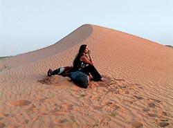 После всех проволочек колонна сворачивает в пустыню и продвигается по довольно твердому грунту с редкой растительностью. Часто здесь встречаются попугаи, верблюды и ослы. Впереди – несколько суток в пустыне с ночевками под открытым небом, которые оказались вполне комфортными, если не брать во внимание жару и вой шакалов. О змеях и насекомых после многочасовой дороги к вечеру уже никто не думал. Спальники бросались прямо на песок, красный от последних отблесков заката, который здесь очень скоротечен и представляет собой в буквальном смысле заход солнца на глазах. Пунцовый диск огромных размеров, скатываясь с небосвода, расцвечивает небо ярко-красными языками, которые через 10—15 минут растворяет темнота. От света до полной тьмы проходит меньше получаса. Температура воздуха немного падает, слегка остывает ландшафт, и пустыня начинает источать почти полынные, горьковатые и одновременно медовые ароматы.